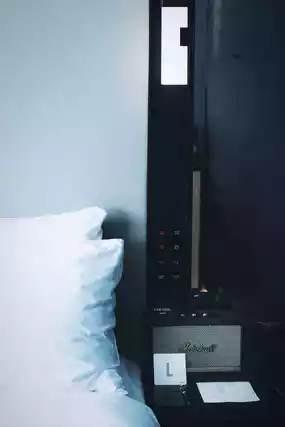 ☕ Marshall speakers + self-service coffee machine + cyberpunk lobby