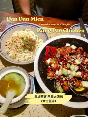 My fav meal in Chengdu! The kung pao chicken was bursting with flavour in the oil filled with chili, peppercorn, and scallions. Dan dan mian had great texture. And the chicken soup I ordered was hot and comforting (especially after days of heavy and spicy foods)