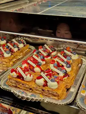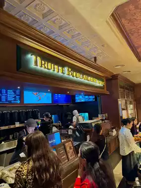 #VisitChengdu Truffe Boulangerie at IFS Chengdu is a bakery cafe filled with the charm of French pastries. The aroma of freshly baked croissants and bread instantly warms you up as soon as you step inside. Their menu offers a wide variety of dishes, from croissants, brioche, and macarons to coffee and hot chocolate. We ordered an almond croissant and a hot latte, which were soft and fragrant, and perfectly complemented each other. The atmosphere is airy and elegant, perfect for a break from shopping in the upscale IFS district. Getting there is also very convenient: take Metro Line 2 or Line 3 to Chunxi Road Station, and it's a short walk away. For us, Truffe Boulangerie is a perfect little escape, perfect for both deliciousness and joy during our Chengdu trip. ✨