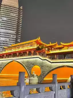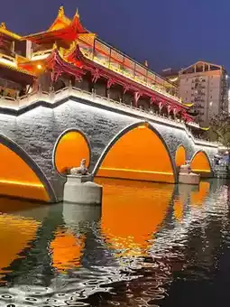 This famous ancient bridge is located in the heart of Chengdu, China. It spans the Jinjiang River and is a beautiful architectural landmark, reflecting Sichuan's rich history and culture. Highlights of this bridge include its traditional Chinese architecture, traditional roofs, and restaurants and cafes located on the bridge and along the waterfront, making it a popular tourist destination and a romantic nightlife destination.