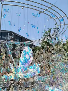 We spent several mornings strolling along the river. The environment was pleasant. The Qingyang Palace was shrouded in mist. Looking up at the Chengdu Metro, surrounded by skyscrapers, the design was stunning. The butterfly display was a perfect touch. Tea drinking is a popular activity in Chengdu, and you can see it everywhere.
