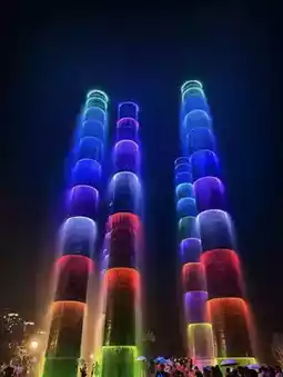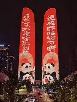 Night: Gaze up at the dazzling light show of the Chengdu Twin Towers.