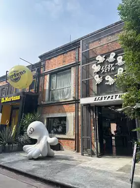 Eastern Suburb Memory (Dongjiao Jiyi), or Eastern Suburb Memory, was originally an old factory and has been transformed into a tourist attraction, a chic check-in spot for strolling. There are many cute shops, food and drink shops, coffee shops, and clothing shops. The highlight is the orange wall that says "成都Chengdu", which is another popular photo spot. Sometimes, there's as many people waiting in line to take photos as there is for the giant bear face on the IFS building.