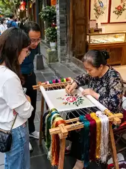 - Highlights: The "Cultural Market" at the alley’s end, where old craftsmen set up stalls on weekends selling sugar paintings and Shu embroidery, you can try making simple sugar paintings yourself.