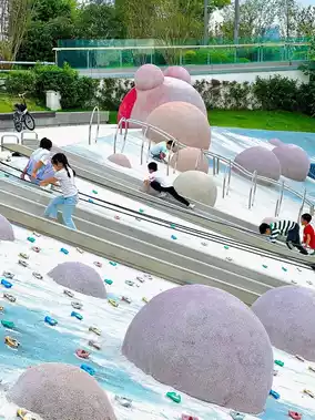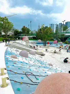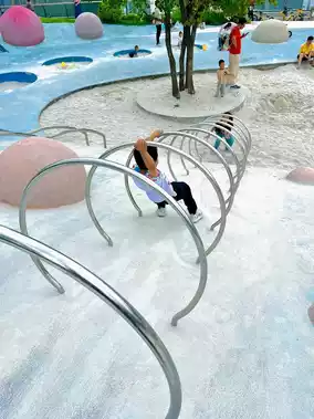 A must-visit for families, the Candy Playground features colorful climbing frames, spinning slides, and a white sandpit full of childlike fun. Kids can burn off energy on trampolines and climbing areas while parents relax in the shade nearby. Remember to bring your own sand tools. Next to the playground is an ecological lake area where you can even go fishing 🎣!!