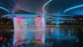 The Jiaozi pedestrian bridge is a must-visit spot. Its lotus leaf-shaped structure paired with LED light strips flows like a star river, giving off strong cyberpunk vibes. On weekends and holidays at 7:30 PM, 8:00 PM, and 8:30 PM, there are fountain shows. The water curtain under the bridge combined with the night view of the Tianfu Twin Towers creates a charming scene perfect for atmospheric photos.