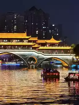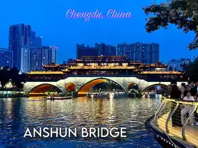 Anshun Bridge (安顺桥), a prominent landmark in Chengdu, stands over the Jinjiang River. It's both a historical symbol and a romantic vantage point, especially at night when the bridge is illuminated, reflecting beautifully on the water. A popular restaurant on top of the bridge offers a relaxing atmosphere and stunning views of the city at night. Perfect for couples, photography enthusiasts, or anyone seeking a tranquil yet vibrant glimpse of Chengdu, this bridge is a must-see when visiting Chengdu.