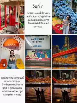 🌄 Day 1: Arrive in Chengdu – Say hello to the panda city at the airport in the evening. Take a chill bus into the city. After passing through immigration and claiming your luggage, follow the signs for the Airport Bus. Keep walking and you will find an escalator going down. Buy a bus ticket for 25 yuan per person to get off at Chunxi Road and wait for the bus at stop number 1 (as shown in the picture). It takes about 1 hour to travel into the city. ⸻🐼 Day 2: Dujiangyan The highlight of Dujiangyan is the giant panda and the 2,000+ year old dam (Tian fu yuan). How to get there: Take the train at Chengdu Railway Station. The train fare is 10 yuan per person. It takes about 45 minutes to walk. When you reach the final station, walk up and you will see the giant panda, a check-in photo spot. At night, there is an ancient street in the city selling street food. Near the photo spot of the dam, Tian Fu Yuan Bridge, we stayed at Anya Man Two Hotel (room price 844 baht per night, but the starting price is only 500 baht). Clean, good price ⸻🍜 Day 3: Kuai Zhai or wide and narrow alleys (Kuai Zhai) & Jinli Ancient Street Kuai Zhai: It is an ancient street from the Qing Dynasty. There are courtyards in the style of Southwestern China. At night, there will be a bar zone, tea shops, coffee shops, and a red lantern atmosphere at night. It is fun to walk and take beautiful pictures. Jinli: An ancient Chinese atmosphere. There are many shops. There is a lot of food. The price is a bit high. There are vintage souvenirs, crafts, and embroidery. There are red lanterns all over the street. The culture is clear. The difference between the two places in terms of shops and souvenirs is not much different. But if you want a chill, cool atmosphere, go to Kuai Zhai. If you want a red lantern, the culture is clear. Ancient Chinese style, go to Jinli (personal opinion)⸻🚌 Day 4: Take a bus to 4 Maidens from Chengdu to 4 Maidens, get on the bus at Chadianzi bus station, fare 120 yuan, sit on the bus for about 3.5-4 hours, the bus stops at 1 point to eat and use the restroom. If you have heard stories about traveling that there are a lot of curves, dizzy, I confirm that it is true. The day we went, there was a lot of fog, almost couldn't see the road. Emphasize to take motion sickness pills 30 minutes before getting on the bus and then sleep for a long time, it helps a lot. For people who are afraid of the cold, I emphasize that it is cold all the time, no matter what season. Bring thick clothes, just in case. The air is quite hard to breathe. It is good to buy an oxygen can. We went 1 day before going up the mountain to let our bodies gradually adjust. The atmosphere around the hotel is very good, the city is cute. We stayed at Chang Ping Inn Hotel, very good service, 100/10, delicious food for every meal, clean room. I will review the hotel later. Next episode⸻🔥 Day 5: Shi Gu Niang Mountain, also known as “Mountain of Four Girls” in Thailand, we asked the hotel to call a taxi to the park. The price was 15 yuan and the park entrance fee was 150 yuan. We chose the Shuangqiao Gou route to enter the park. There will be a bus up to the mountain. It takes about 30-40 minutes (the road is so curved that it is hard to compare. Please take motion sickness pills 30 minutes before getting on the bus and do not sit in the back of the bus under any circumstances). We will tour from above, slowly taking the bus down or choosing the walking route. It is stunningly beautiful, as the rumors say. It is very cold up there and very difficult to breathe. If you have time to walk, I recommend walking down. There will be a walking path where you will see more natural views. Note: We couldn’t walk much because it was so cold that we had a headache. I’m not sure if it was just the cold or the lack of air. The headache was excruciating. In the end, we only spent 4 hours in the park and had to hurry back to the hotel. If anyone is going to travel, I recommend getting plenty of rest before going and taking care of your health.⸻🚄 Day 6: Take the high-speed train to Chongqing! The day of arrival We asked for the bus driver's contact. When we were about to return, we WeChatted him and arranged a pick-up time at the hotel for the driver. The price was 120 yuan. When we arrived in Chengdu, at the Chadianzi Bus Station, in front of the station, there is a subway from Chadianzi by subway line 2 and got off at Chengdu East Railway Station (15 stations in total). The subway fare is 5 yuan. We bought a high-speed rail ticket to Chongqing, sitting in first class, for 1,234 baht, and it took 1 hour and 38 minutes (travel time depends on the ticket purchased. Some trains take 2-3 hours). Note: If you have a lot of luggage or valuables and don't want to leave your bags in the baggage area, we recommend sitting in the first class. We have a 28-inch bag and put our bags in the footrest. ⸻🏙️ Day 7: Bei Cang Beichang Street is a vintage street with many cafes and restaurants. The price is the same as a cafe or restaurant in Thailand. We went to eat at "1995 Bistro". Every menu item was delicious. The strangest thing was the Mala Spaghetti. We're not sure of the name of the menu but we've never eaten Mala Spaghetti before. Indescribably delicious. I recommend you to try it. Those who like taking photos should try it out. It's not too busy. Many Chinese teenagers go there to take photos. At night, we went to Hong Ya Dong and took photos on the opposite side. We hired a local photographer to take photos. If you don't want to pay a fixed price, you can ask them to take 2-3 photos for 10 yuan per photo. After taking photos, we went to a famous restaurant among Chinese teenagers. We happened to have a Chinese friend in Chongqing. Our friend took us there. It's a very young restaurant with good taste. There were no foreigners in the restaurant. The food was very delicious. The craft beer was good. If you've never drunk before,