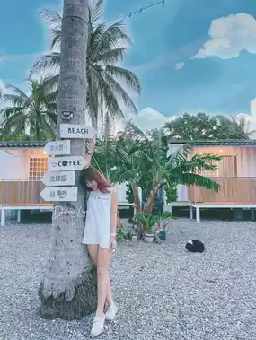 The coconut trees are towering, and the sound of the waves is heard nearby.