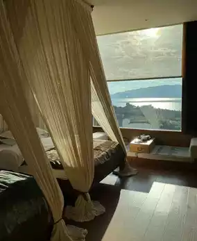 But this time, after the big epidemic, I was really tired and just wanted to find a quiet little courtyard to rest. Fuxian Lake can actually satisfy me. I found this one, a Chinese courtyard where you have to change into cloth shoes at the entrance. It's very quiet and gives a sense of peace.