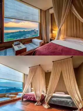 In the morning, the sunlight gently shines on your face through the thin gauze curtain. Pull back the curtain, and the magnificent view of Fuxian Lake is fully revealed. The azure lake is connected to the sky, shimmering like a blue satin carefully laid out by nature. Sitting on the balcony of the room, making a cup of tea, and quietly enjoying the lake and mountains in front of you, your body and mind are healed by this tranquil beauty.