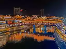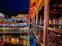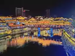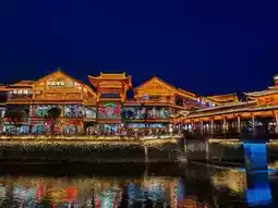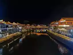 The best time to visit is at night ๐, when the night view is stunning. Many people feel as if they are in the ancient town of Fenghuang. The Chenzhou River flows through the middle ๐, with restaurants lining both banks. Four bridges span the river, including arch bridges and covered bridges, each with its own unique charm.