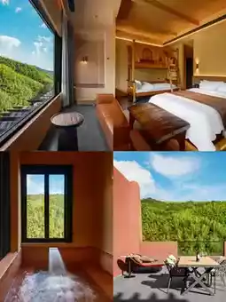 Our room had a viewing balcony and a private hot spring pool! Sitting on the balcony, the view of Yangtian Lake grassland just fills your eyes. Watching the sunset in the evening is so healing, and soaking in the hot spring while feeling the mountain breeze at night melts away all the fatigue. The bathroom is equipped with a smart toilet and a Dyson hairdryer—such thoughtful details!