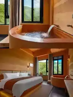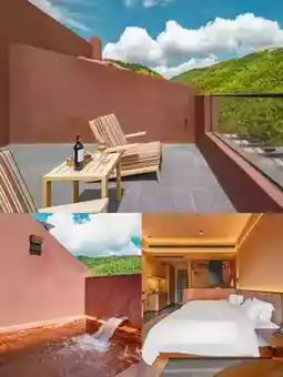 • Every room has a viewing balcony + private hot spring: Drink hot tea on the balcony in the morning watching the sea of clouds roll by, watch the sunset dye the grassland red in the evening, soak in the hot spring at night while feeling the mountain breeze, and look up to see the starry sky at 1314 meters altitude.