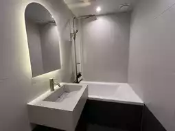 A newly constructed building with modern and sophisticated interiors, offering a clean and luxurious ambiance โจ