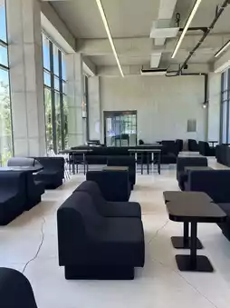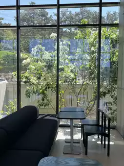 a wonderful cafe. There were indoor and outdoor tables, and there was also a kids' zone where children could play.
