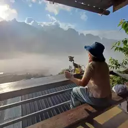 🌸🌸This is another old and original cafe in Ban Na Lao Mai that offers a close-up view of Doi Luang Chiang Dao. There is a viewing balcony that offers a view of Doi Luang Chiang Dao in front. In the morning, the view is amazing. There is fog floating in front. Sitting and sipping coffee with a beautiful view is the most refreshing.