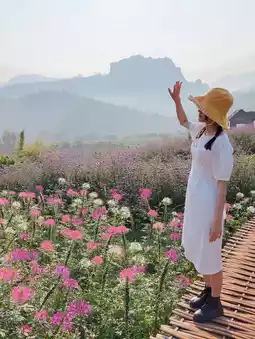 Rai Phu Pha Mok, a peaceful place to stay in the middle of a field of flowers and mist.