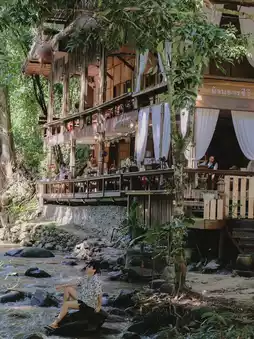 Baan Tarnchevee :: Mae Mae, Chiang Dao, Chiang Mai, accommodation located in the middle of the valley, along the stream, good atmosphere, accommodation has 4 rooms, Tarn Thada, Ampu, Wapi and Chonlathee, private bathroom, complete facilities, downstairs is a cafe zone, drinks, cakes and various pastries, dinner is a Khantoke set, breakfast is rice porridge, pork, tea, coffee, Ovaltine, complete, order additional drinks, travel from Chiang Mai city, takes 1 hour and 50 minutes, sit and listen to the sound of water flowing from the stream, the sound of nature therapy, put your feet in the water, heal your heart very well.