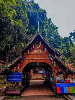 ⛩️ In front of the cave, you can also visit Wat Tham Chiang Dao, where you can pay your respects to the Buddha. It's also a great way to enhance your auspiciousness before entering the cave.