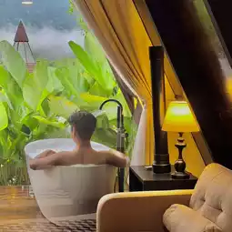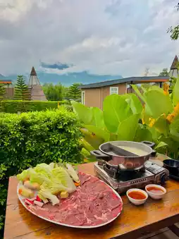 Stay at this romantic accommodation in Chiang Mai, with a full view of Doi Luang Chiang Dao. The atmosphere is warm and inviting, perfect for a relaxing getaway. Filled with flower gardens, mountain views, and mist, it's so beautiful you'll want to freeze time.