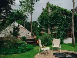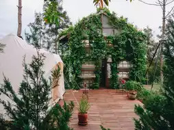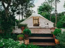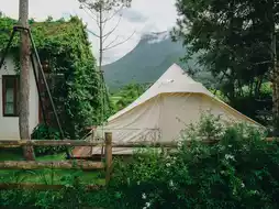 The accommodation is simply designed. We stay in a cozy tent, like we've been transported back into an old love letter. The only sound is the wind, cicadas, and the stars at night as our companions. There are no distractions, no strong phone signal to rush through, but instead, we're filled with natural signals that help us reconnect with ourselves.