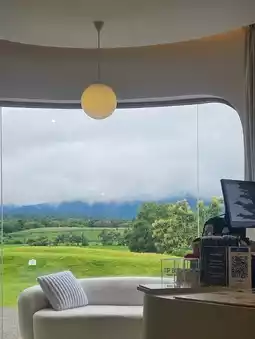 The cafe is designed to offer panoramic views. Every table and chair is carefully arranged to focus visitors' eyes on the majestic Doi Luang Chiang Dao peak. Whether in the morning, white mist lingers over the mountaintop, or in the afternoon, warm sunlight sweeps across the forest, the sight before your eyes fills your heart with joy without effort.