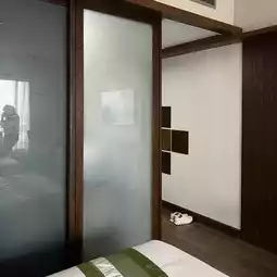 🏨 When I opened the door to the room, I was amazed because the price was not expensive. But the room was very spacious. The bed was big. There was a living room set, sofa, TV, refrigerator, lots of plugs, lots of mirrors, a strong hair dryer. What I liked the most was the bathroom. It had a separate shower room, toilet, and sink in front. The bathroom area can be closed with a sliding screen. Or you can shower without closing it to show off your sexiness.