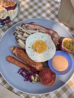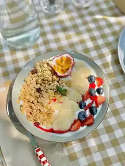 🥗🥐 The food is in the style of Breakfast & brunch. It's a homemade menu that looks very delicious. The shop has both food and drinks. We ordered the Big breakfast 🍳 which is bread, fried eggs, sausage, mushrooms, carrots, it's delicious. And the Granola bowl 🥣 The decoration is cute and delicious. 🥹 But it took a while. I took pictures while waiting. There are many photo spots. 📸