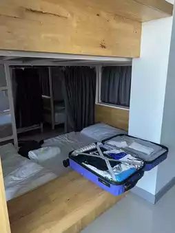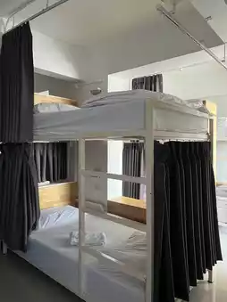 🏨We stayed in the hostel style, which is a bunk bed like a dormitory. You can choose a female-only or mixed room. I like the bed here because it has space to put your stuff. The bed is wide and high, making it comfortable to get up and sit without hitting your head.