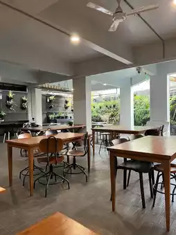 🏨This place seems to be designed to meet the needs of backpackers or people who want to stay long-term because they have complete facilities. I have never seen anything like this anywhere else. Each floor has a common area outside, and on the 1st floor there is a very large common area where you can work, watch TV, have a kitchen, cook your own food, have a laundry room, iron, and free bicycles to borrow (300 baht deposit).