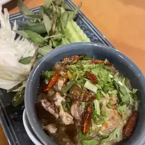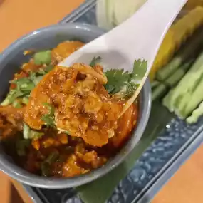 Recommended dishes are Khao Bai Pla Buang, Nam Prik Kha Moo Hum, Pak Seang Da curry with dried fish, Pla Laab, and others that you must try for yourself.