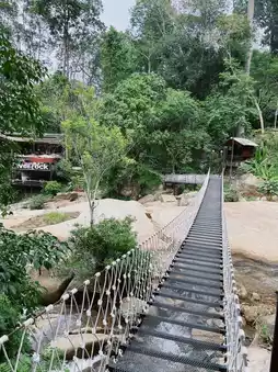 And for those who are content creators, there are photo corners to choose from to take pictures to show off to your friends, such as the must-see check-in point, the 'suspension bridge', which is an extremely beautiful photo spot with a view of the cafe, mountains, and waterfall.