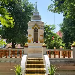 Phra That Luang or Phra Mahathat Chedi is the chedi for the year of the dragon. It was built in 1888 CE. It is 25 wa high with a square base 16 wa, 1 cubit and 6 inches long on each side. It is covered in white gold leaf around the chedi. The top of the umbrella is made of 10 kilograms of gold.