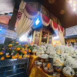 🕌 Wat Phra That Doi Kham is another place that many people often go to worship for good fortune during every festival. In addition to being an ancient temple of Chiang Mai, Wat Phra That Doi Kham is also famous for making wishes because Luang Pho Than Jai is the highlight of the temple. Today, we will take our friends to worship Luang Pho Than Jai at Phra That Doi Kham. 🙏🏻🙏🏻 This place is located on a small hilltop in the Doi Kham area, about 200 meters above sea level in Mae Hia Subdistrict, Mueang Chiang Mai District. It is an important ancient temple with a history of more than 1,300 years since the Hariphunchai period. It is the place where the Phra That Doi Kham pagoda, which contains the relics of the Lord Buddha, is enshrined. It is considered another sacred place of Chiang Mai where tourists and Buddhists continuously come to pay homage and ask for blessings.