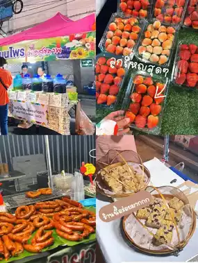 🍧🍡 Plenty of snacks and food, arranged in zones. There's also a seating area, but maybe not as much as on Sunday. We usually come here to eat because there are a lot of delicious food. However, the prices are slightly higher than tourist prices. 🔅
