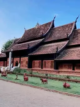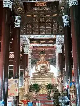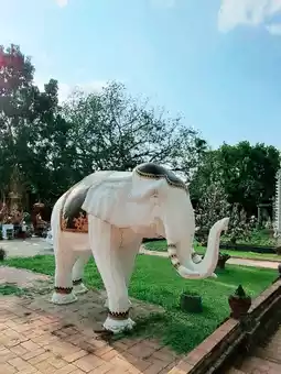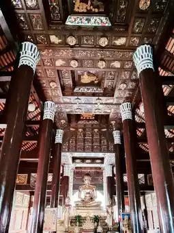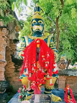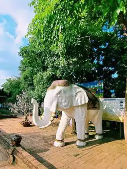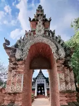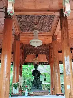 Inside the temple, there is a wooden chapel that is intricately carved in ancient patterns. The highlight is the large entrance door made of bricks with a rounded shape. The door is directly opposite the wooden chapel, which is a beautiful angle. In addition, inside the temple, there is a large ancient pagoda and many sacred objects enshrined in the temple for Buddhists to worship for good luck. Therefore, it is not surprising that in addition to Thai tourists, there are also foreigners who are interested in it every day.