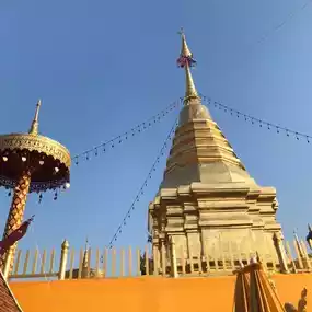 If you have the opportunity to pay homage to Phra That Doi Kham, don't forget to stop by and make merit. Wat Phra That Doi Kham is famous for making wishes. Focus on asking for only the most important one. 🙏🏻✨ If you come to visit Chiang Mai, stop by Phra That Doi Kham. 🙏🏻❤️✨ There are garlands to prepare to fulfill your vows.