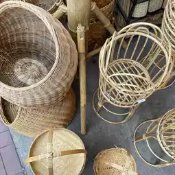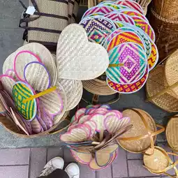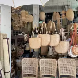 This area is famous for its woven handicrafts, whether it's bags, hats, shoes, or cute home decorations. The shop we chose to stop by is called Honey Rattan, which can be called a check-in point for tourists. Inside the shop, there are many products to choose from. Each item is inexpensive, starting at ten baht. For those who love taking pictures and want cool, chill photos, you don't have to find many angles. 📷 Because here, every angle is beautiful.