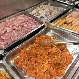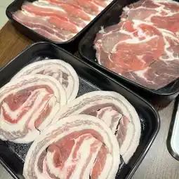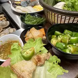 This shop is delicious for both beef and pork lovers at a very affordable price. Premium pork is 289 baht, premium beef is 389 baht. We like that the shop is very clean. The equipment is in a bag tied to each set. As for the food, there is both pork that must be ordered and a section for self-service. The menu that we would like to recommend is the sliced pork, sliced pork belly, which is cut into the right size for easy grilling. Other menus that you can self-service include shrimp, New Zealand mussels, salmon belly, bacon, squid, and various vegetables.
