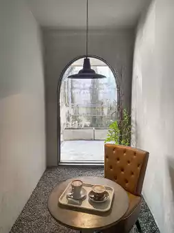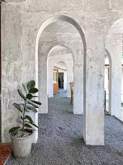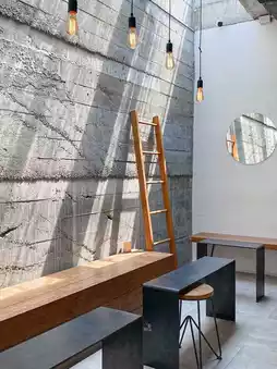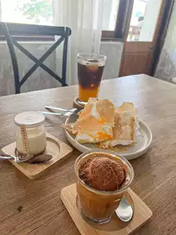 The shop is decorated in a minimalist style that goes well with wooden furniture. The shop has many photo spots. Especially the background is a concrete wall and cool, raw, exposed pillars. The resulting pictures are beautiful and have a story. Every corner of the shop is really eye-catching. The view behind the shop is along the Ping River. It's comfortable to sit in Chiang Mai style. In addition, the shop also has a menu of hot and cold food and drinks with refreshing flavors. The dessert side is equally interesting. #cafe #cafe review
