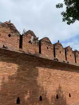 There are pedestrian walkways in front and behind the city gate, with different photo spots. The square for taking pictures is wide, so you can take pictures slowly. We will stop in front of Tha Pae Gate to take pictures📸, take pictures of the red brick walls🧱, pigeons🕊️, and the daily life of the city gate.