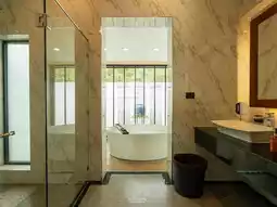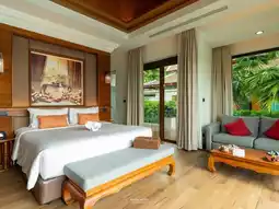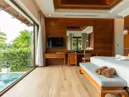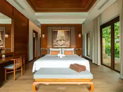 There is only one type of room called SANCTUARY VILLA, a large room of 88 square meters. The design is in a contemporary Lanna style. The room is divided into many zones, such as the bedroom zone, bathroom zone, dressing room zone, and swimming pool zone. Amenities are fully provided. There is also a bathtub in the room.