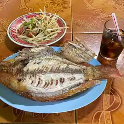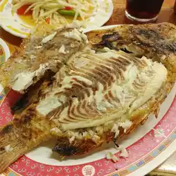 I recommend ordering grilled fish, rice, and even somtam to eat as a side dish. The fish meat is so thick, rich, and soft that it's delicious on its own, and it's even better when eaten with rice! It's also delicious when you eat the slightly spicy and salty somtam like kimchi...😛
