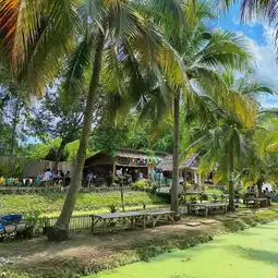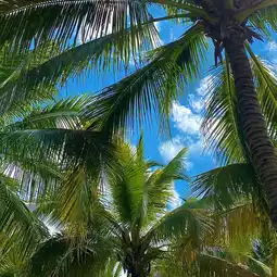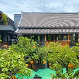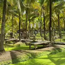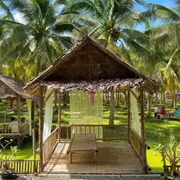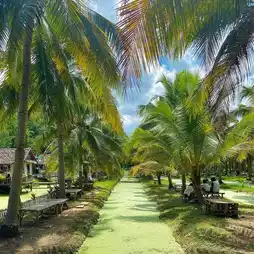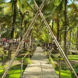 It was originally a coconut farm, and there are many coconut trees lined up in a very unique space.