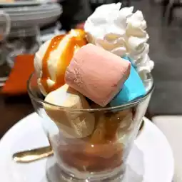 I chose to try the ice cream, served in a big scoop, decorated with marshmallows, which the kids liked.
