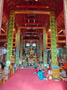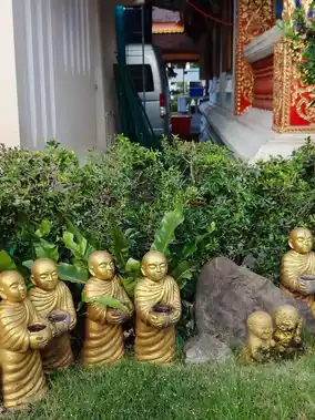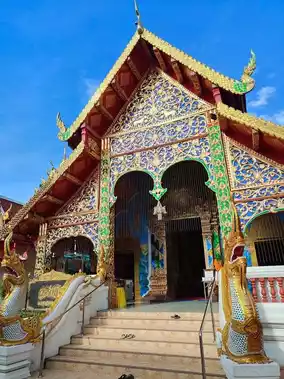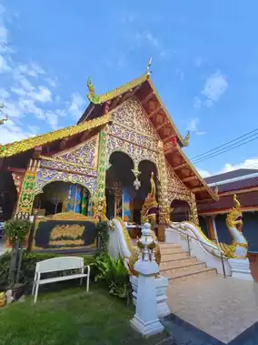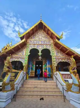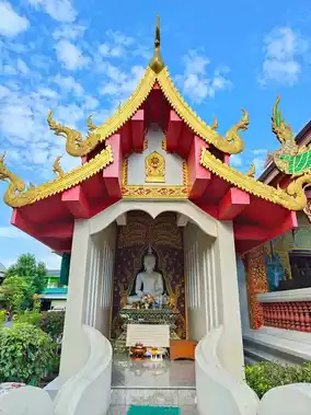 Wat Dab Pai, located within the old city of Chiang Mai, Thailand, is a tranquil and sacred temple. I arrived here in the morning on my motorcycle and was immediately struck by the sight of a grand and intricately designed Buddhist structure as I entered the temple grounds. Nearby, there were statues of young monks, and in front, informative plaques introduced the temple's history.