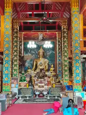 The temple's interior was beautifully designed and exuded a sense of holiness, with various Buddha statues on display. I paid my respects with folded hands in a gesture of reverence. Adjacent to it, there was another Buddhist building housing several Buddhist statues.