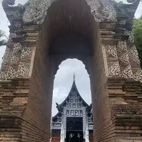 🙏🏻 Hello, friends of Trip. Today, Gammy came to visit Chiang Mai. This time, I stopped by Wat Lok Moli again. This time, people and tourists still like it. The inside of the chapel is also a highlight for taking pictures as usual. 📸 The corner of the door in front is also very beautiful.