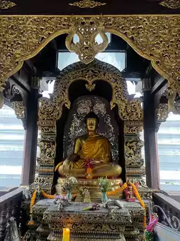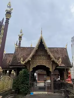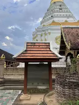 🛵 Wat Chiang Yuen is a very old temple, just 400 meters past Wat Lok Moli. There is an old wooden sign at the entrance. When you enter, you will see a very large white pagoda. When Gammy came, the temple was about to close. The temple closes at 6 pm.